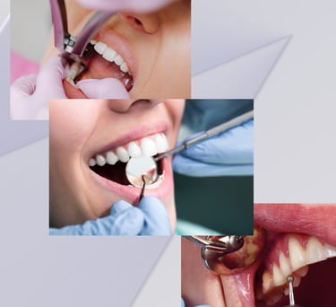 Prevenção e Limpeza, Restaurações, Próteses, Clareamento dental, Cirurgias Odontológicas (exodontias), Tratamento DTM Placas de Bruxismo, Laserterapia.